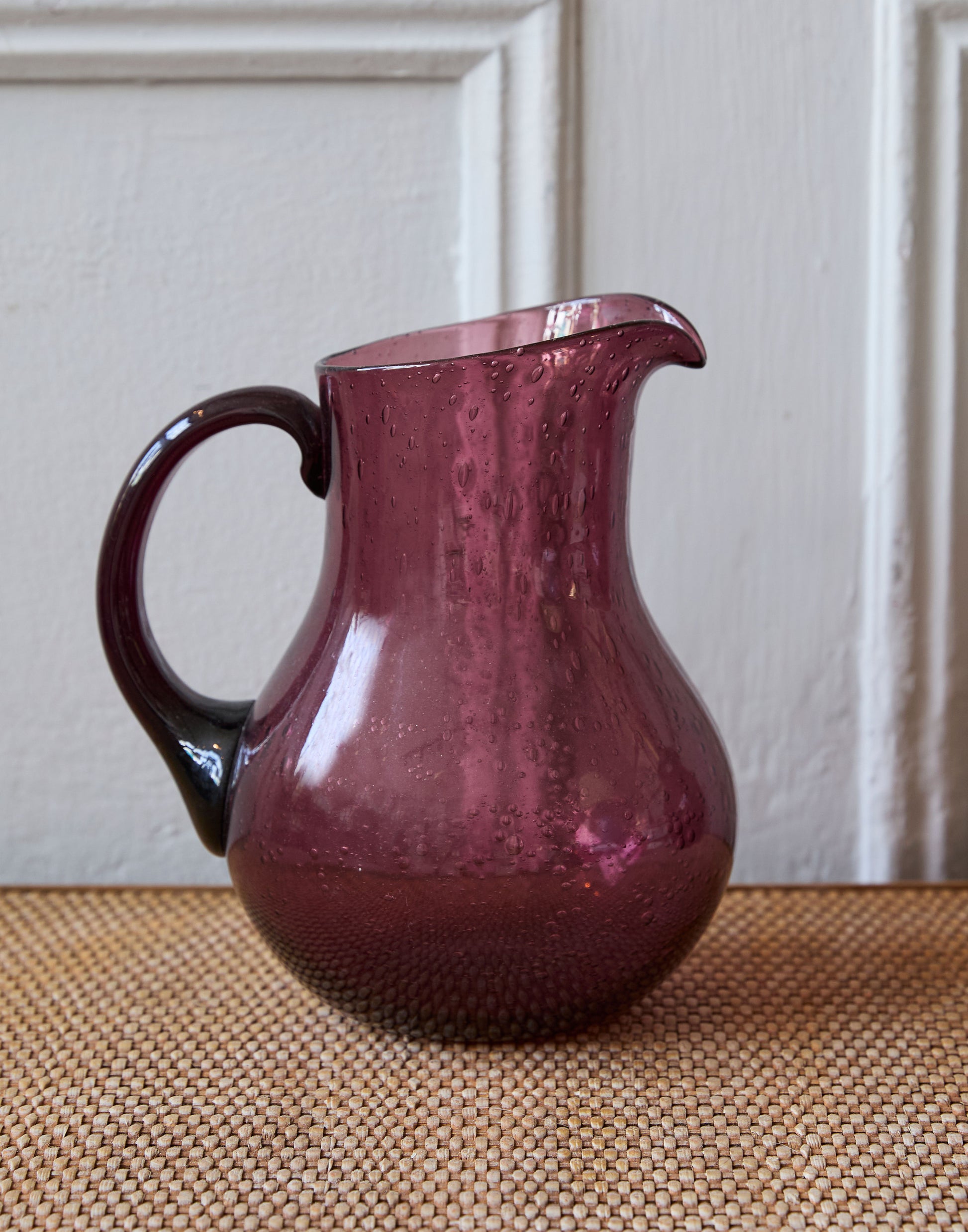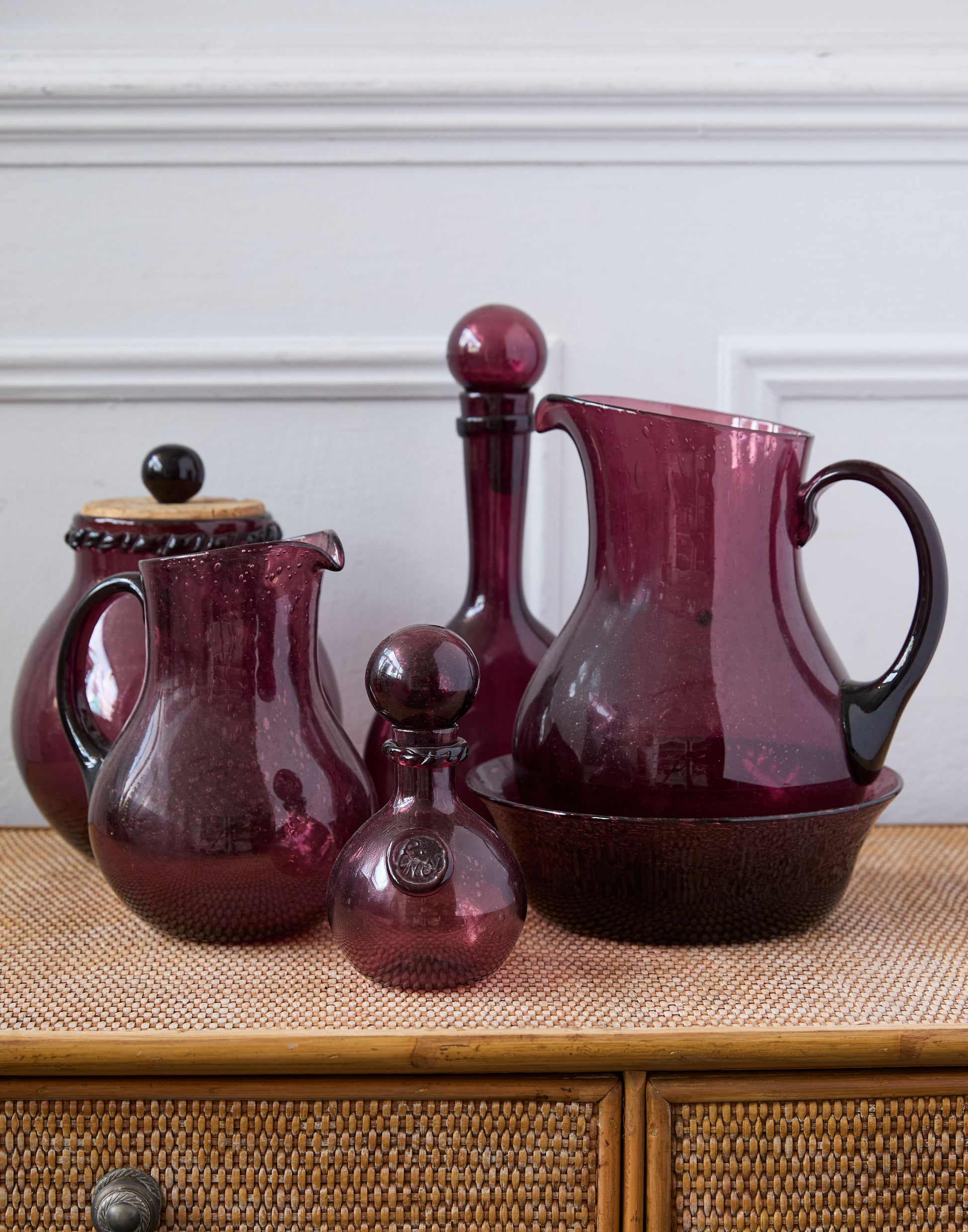 A collection of six vintage hand blown glass in amethyst made by La Verrerie de Biot in the South of France: