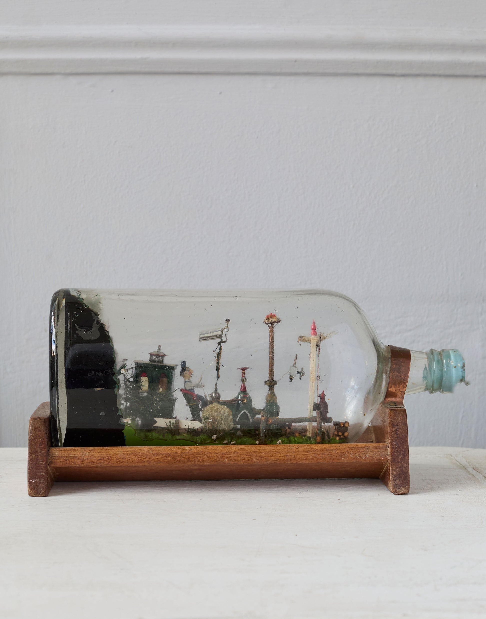 Miniature 'Train in a Bottle' on a wooden stand - 28 cm diameter