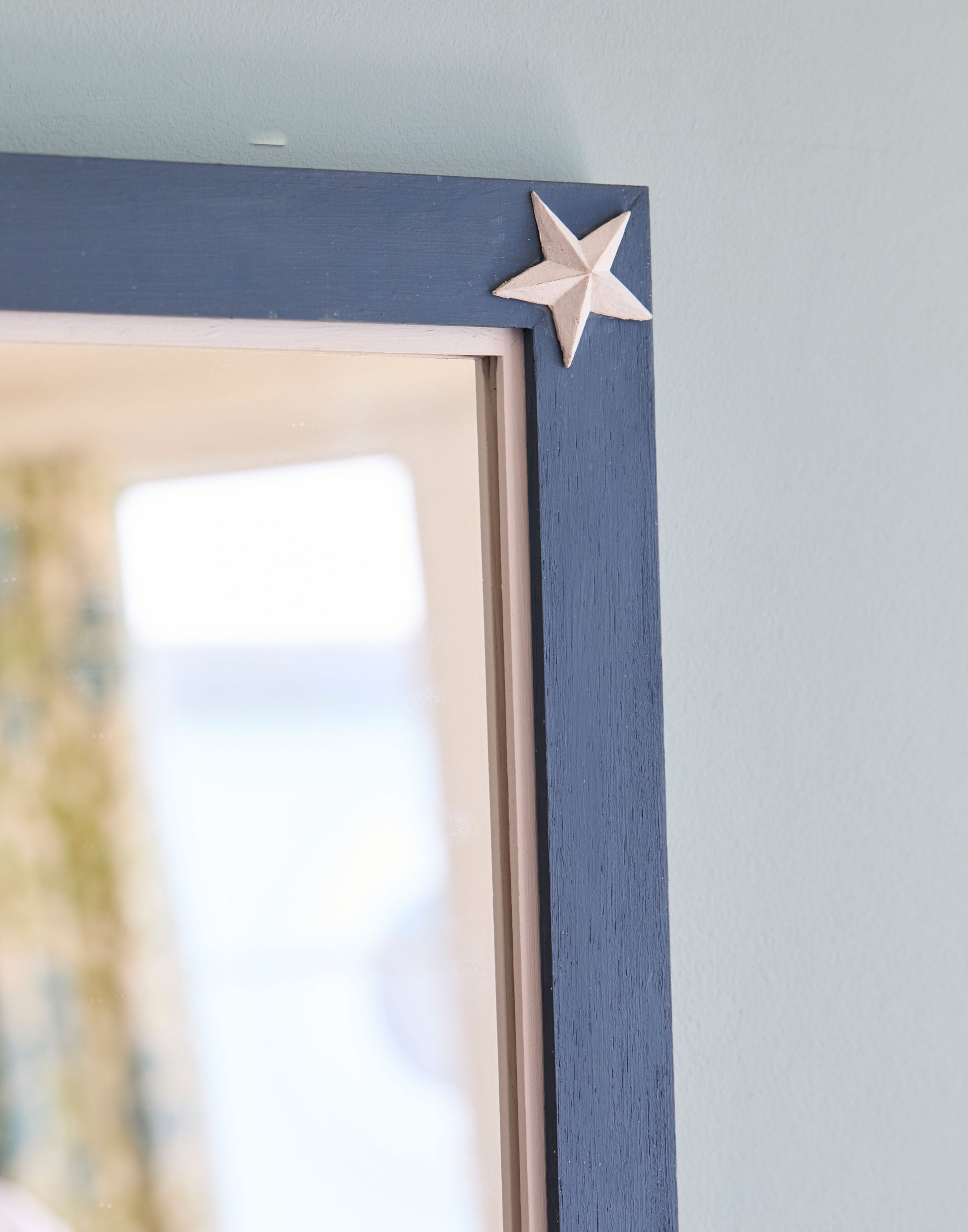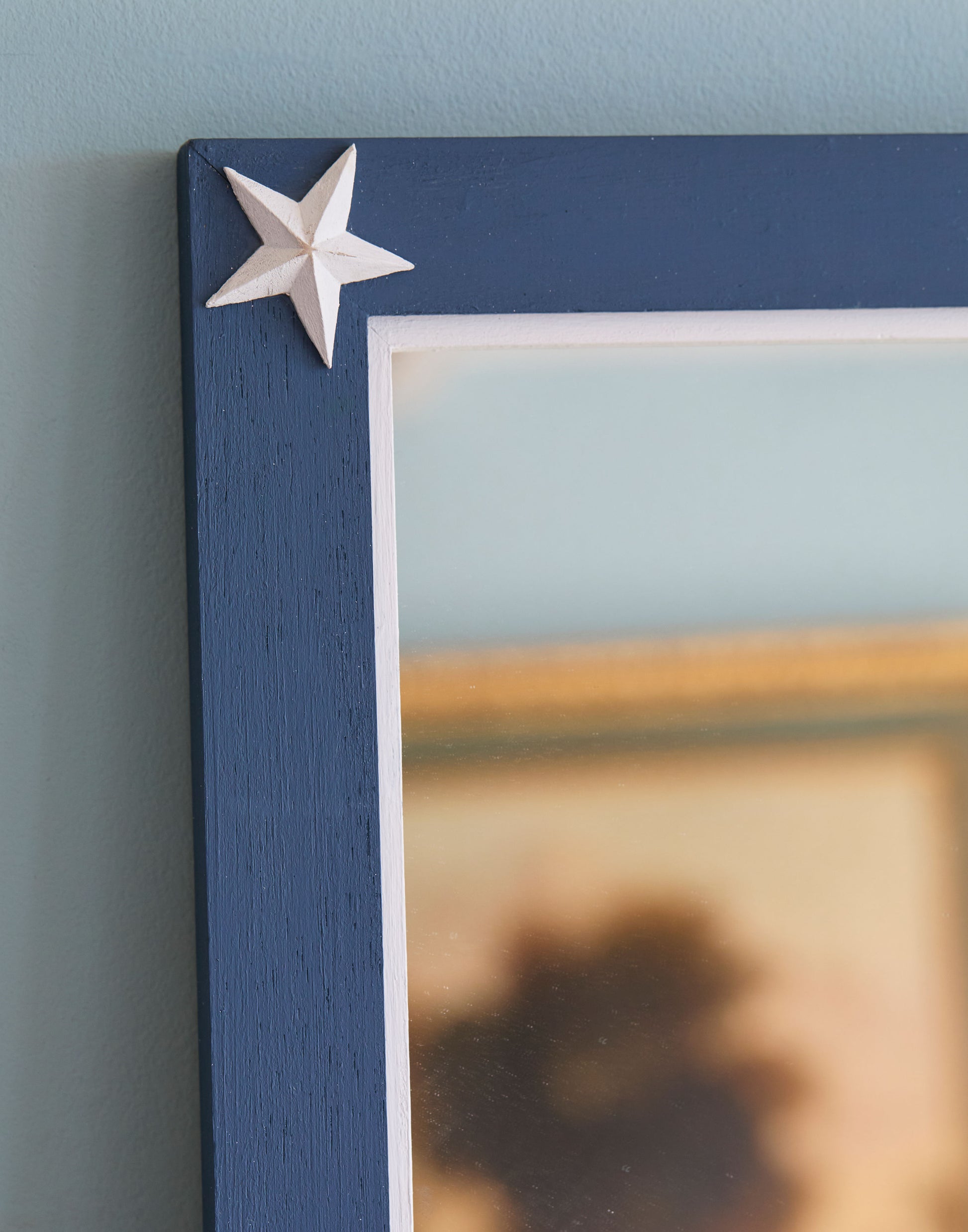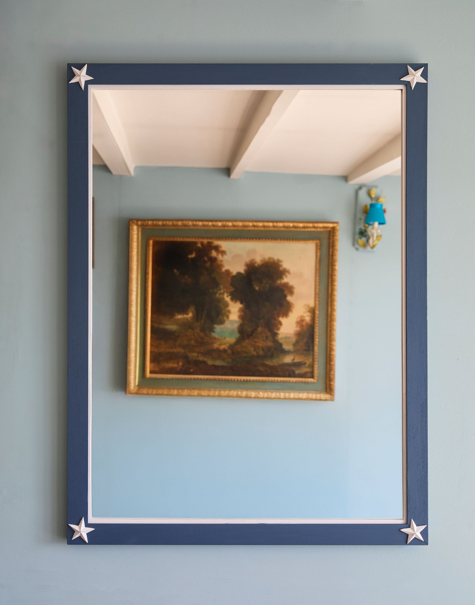 A Mirror with Star Decoration Handpainted in Little Greene Hicks Blue