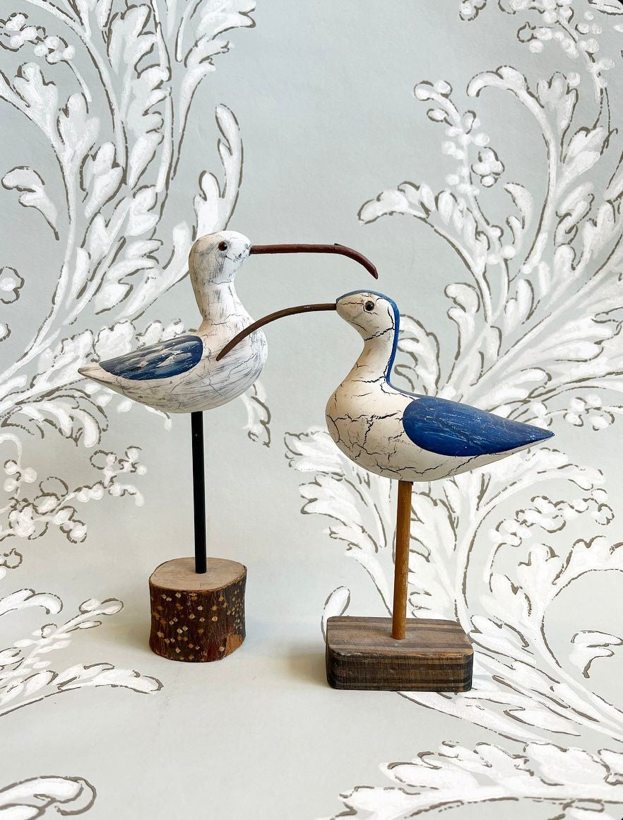 A Pair of Vintage Hand-Painted Sandpipers on Wooden Bases