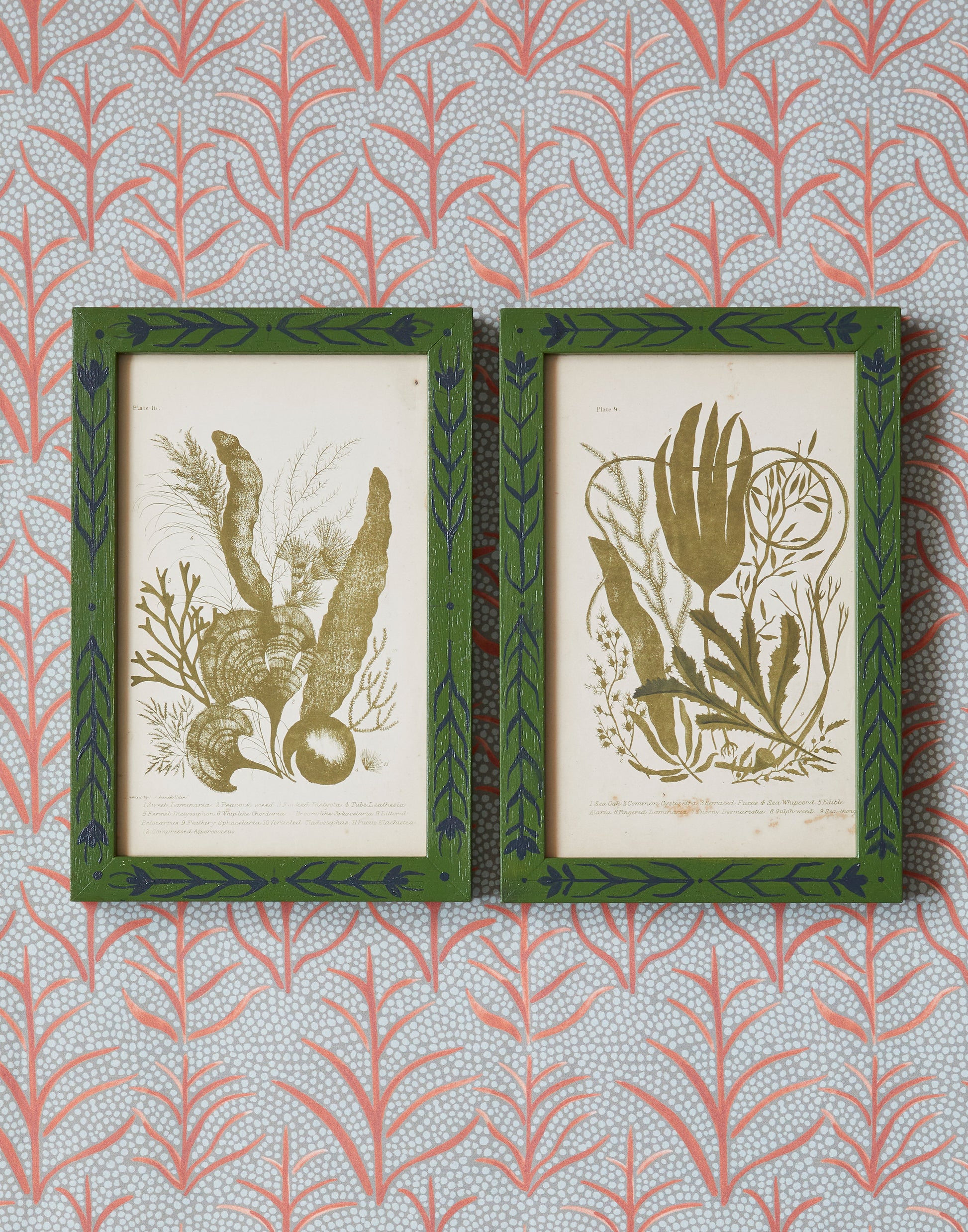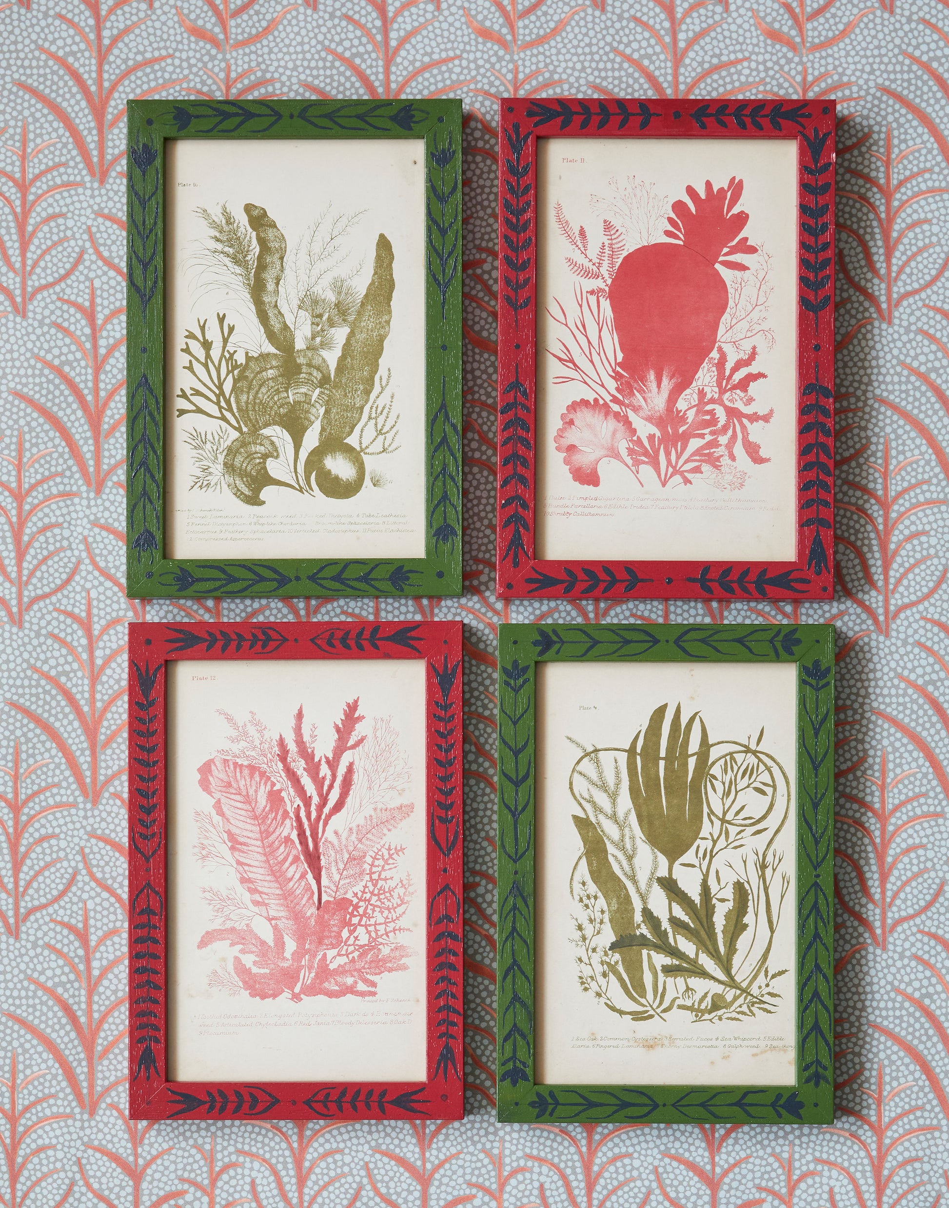 A set of four nineteenth century hand-coloured engravings of seaweeds presented in hand-painted decorative frames. The price is for the set