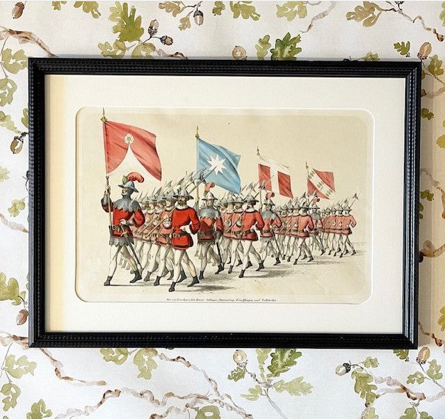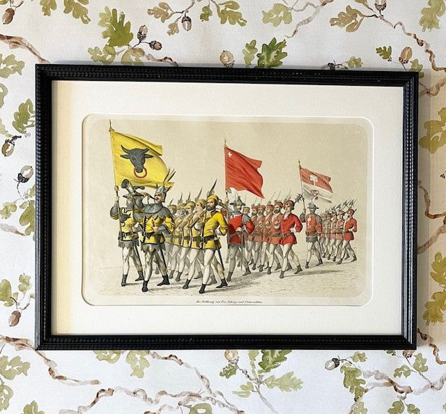 A set of four rare engravings of the Vatican's Pontifical Swiss Guard presented in gently curved mounts and smart ebonised frames and non-reflective glass. The price for the set is £900 or individually they are £250 each.