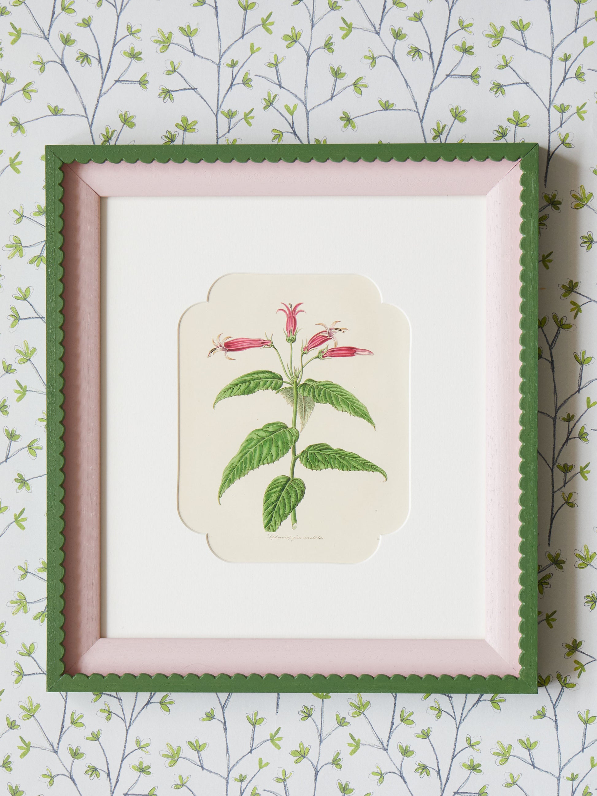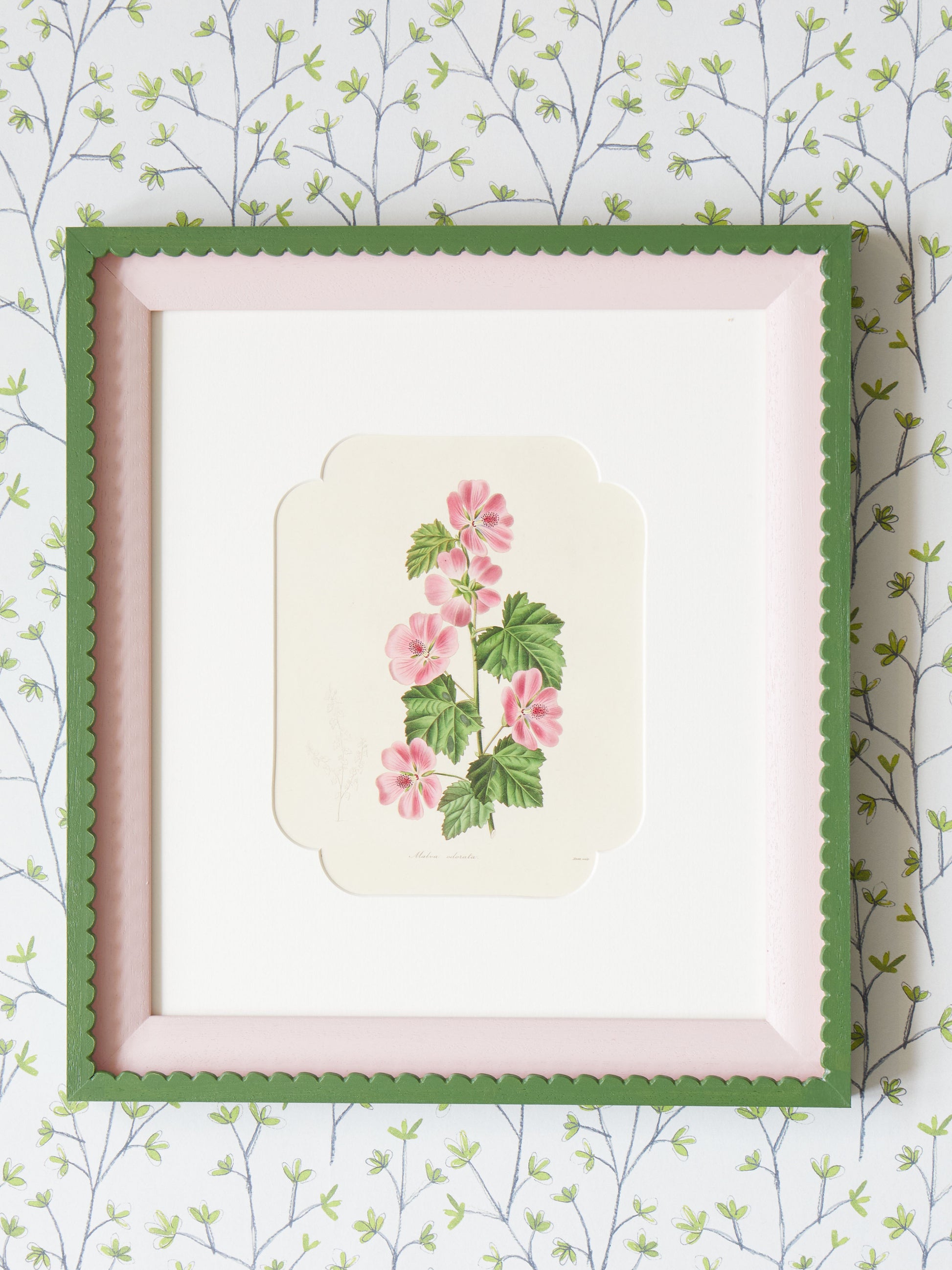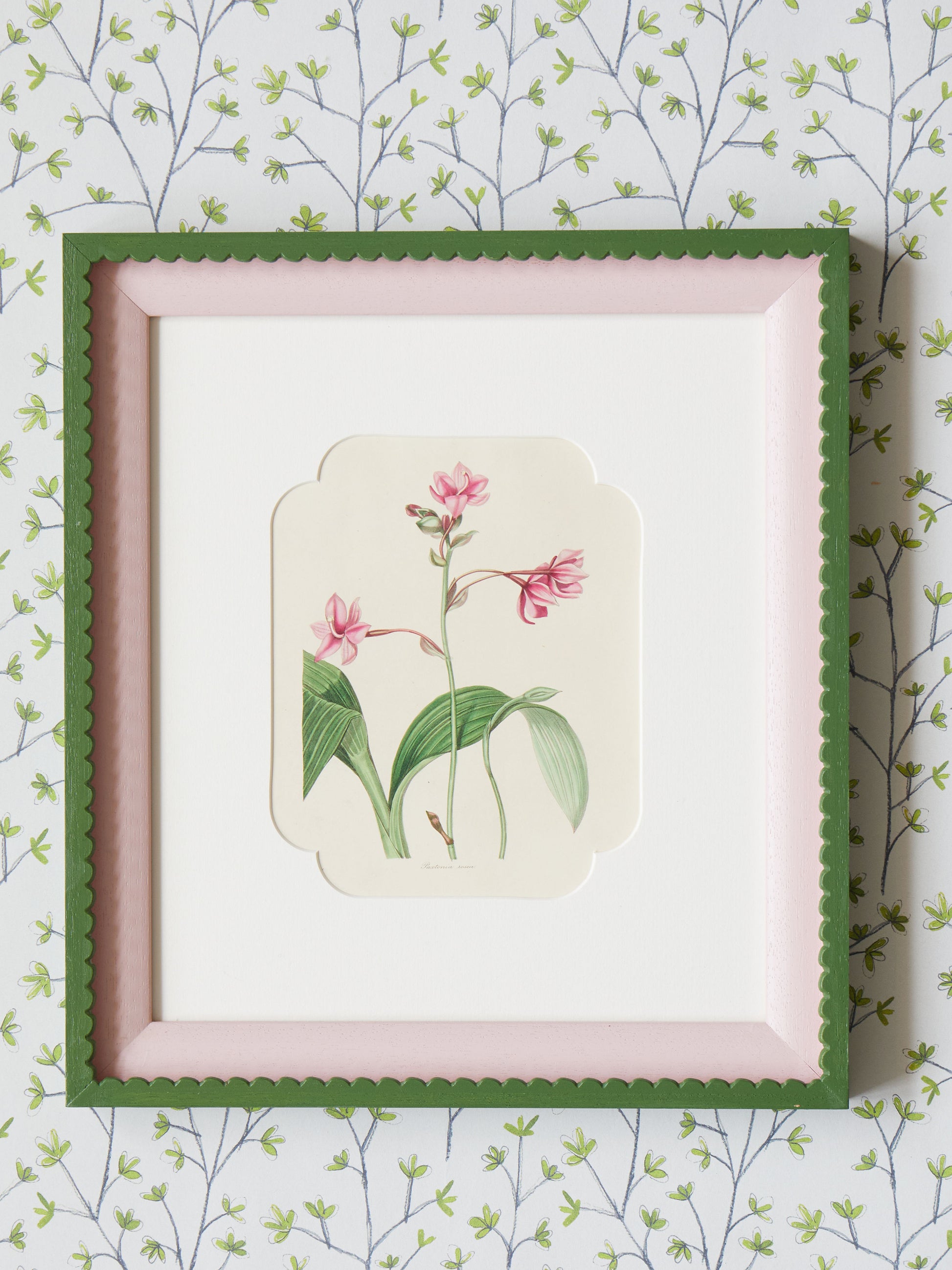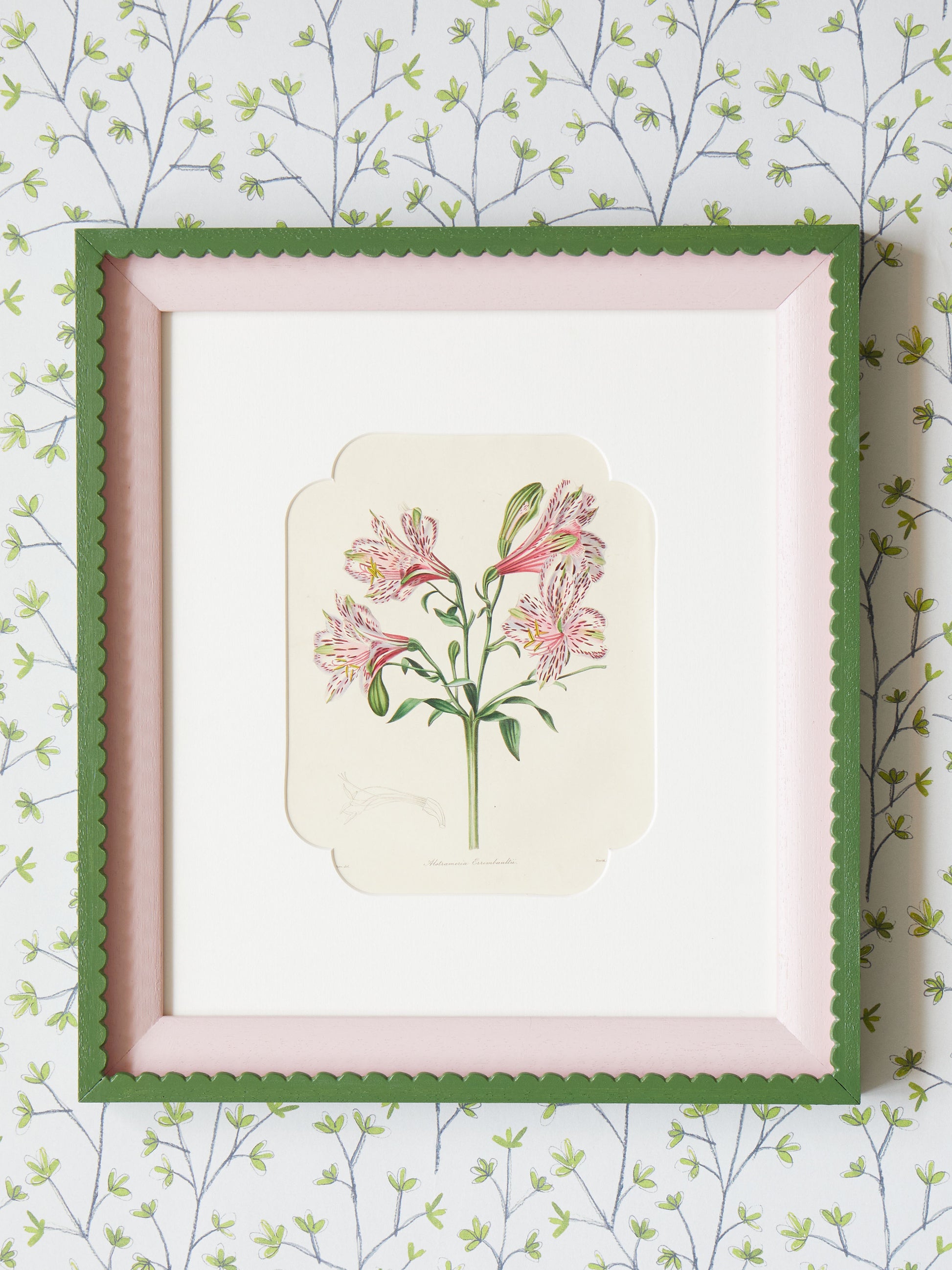 The prints are elegantly presented in decorative mounts and our exclusive scalloped frame which is hand-painted in two contrasting colours: Little Greene's Hopper and Confetti.
