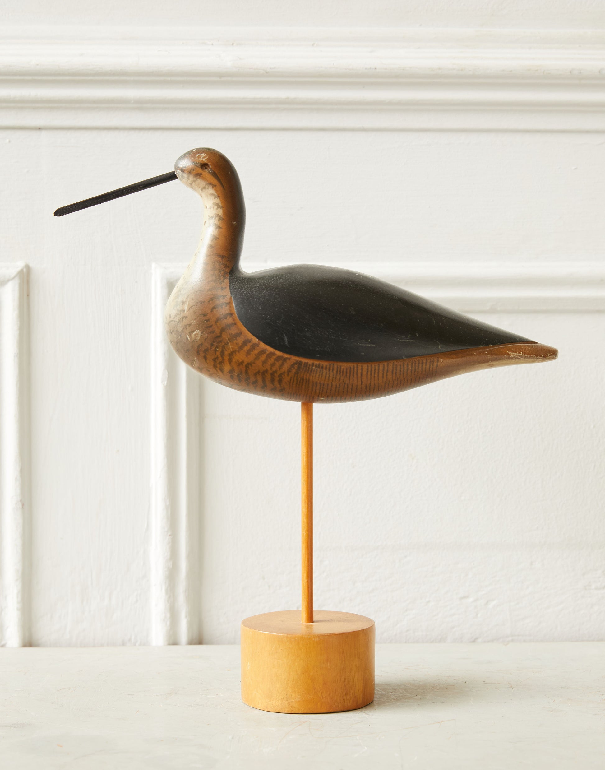 A Vintage Wooden Wading Bird on a Wooden Base