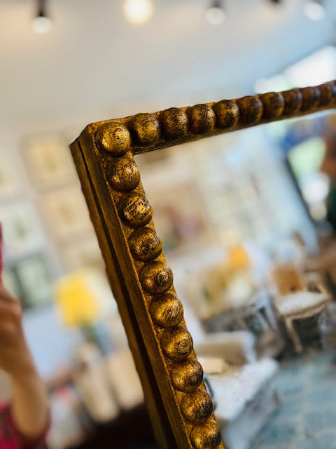 A gold bobble frame fitted with antique-effect mirror. The bobbles are 2.5cm wide.