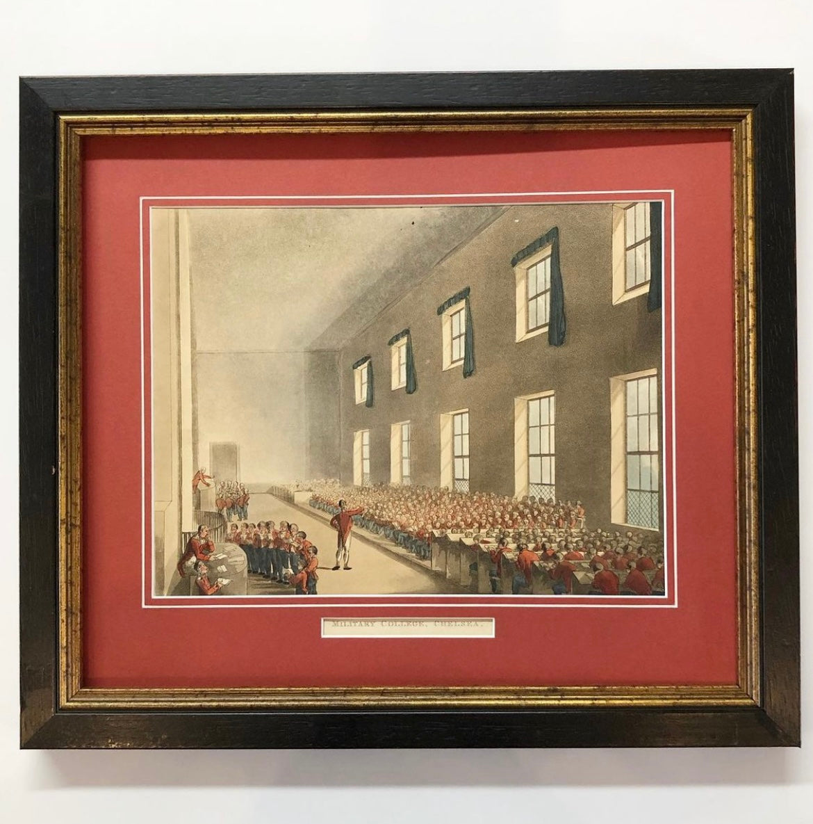 A Pair of Aquatint Prints of Chelsea Hospital and Chelsea Military College by Augustus Charles Pugin and Thomas Rowlandson