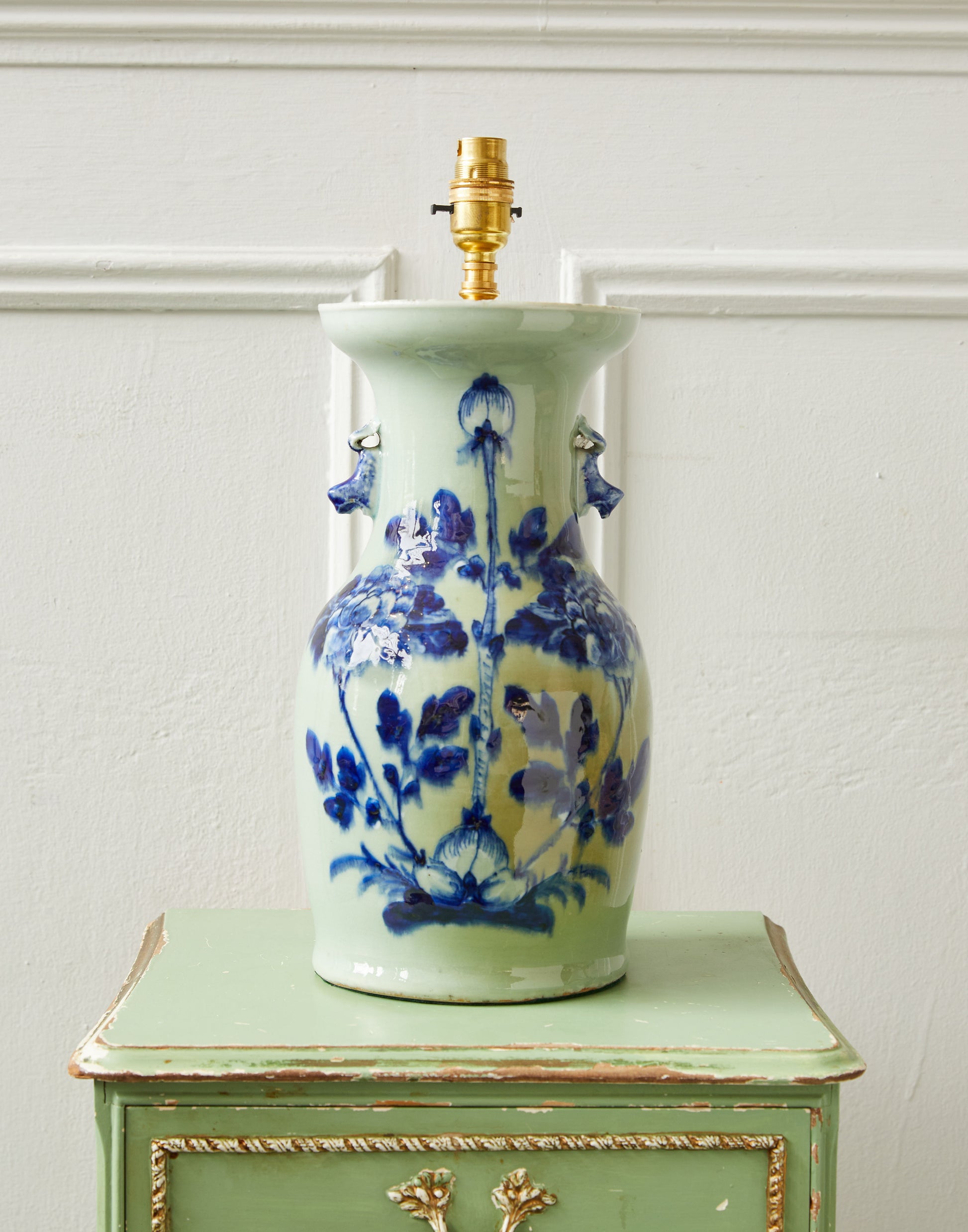 A Large 19th Century Chinese Blue and Celadon Porcelain Table Lamp