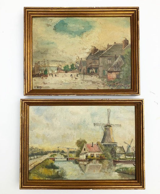 A pair of small continental oil paintings in vintage frames. The price is for the pair.