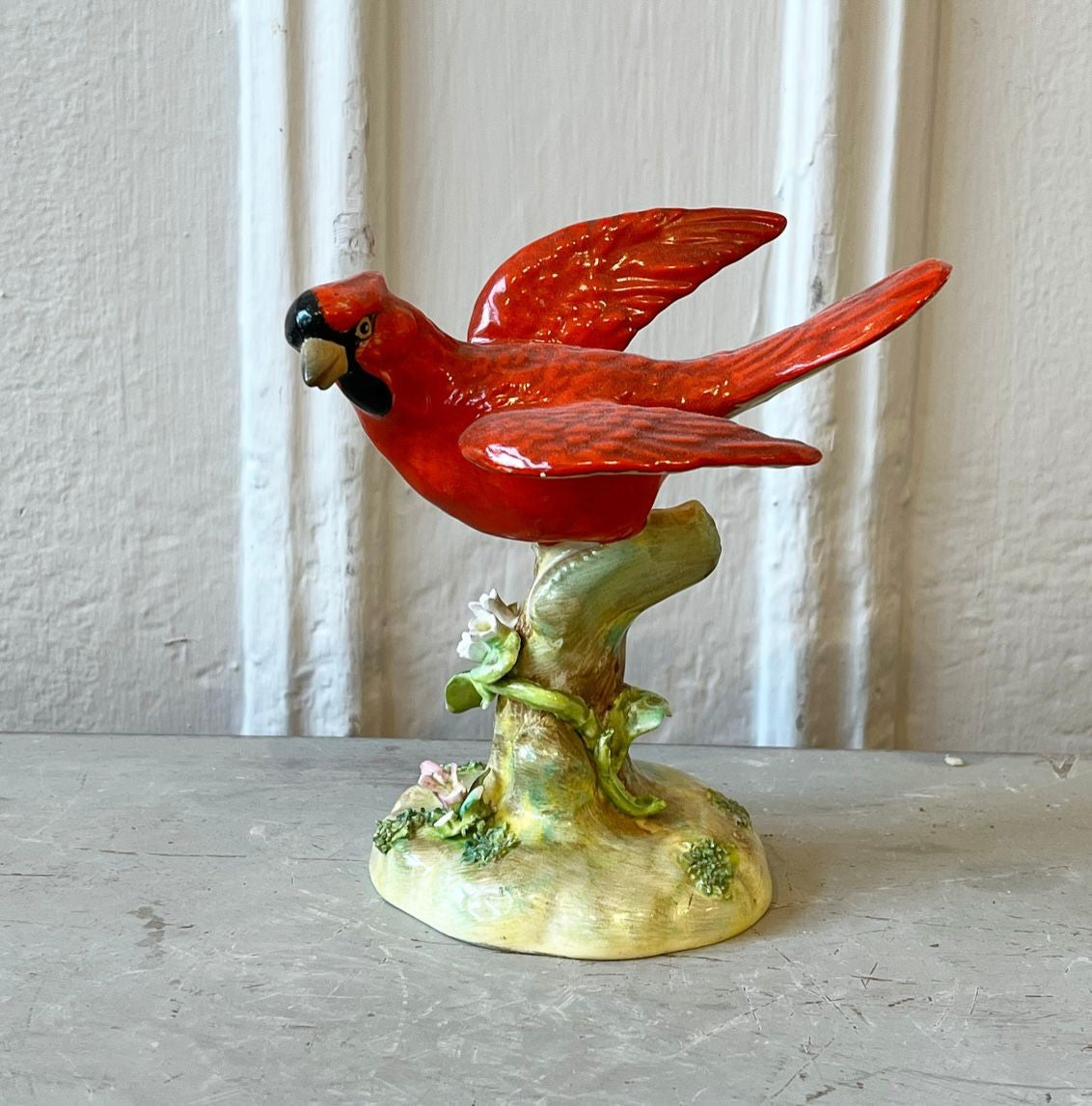 Vintage Crown Staffordshire Porcelain Figurine of a Red Cardinal Perched on a Branch