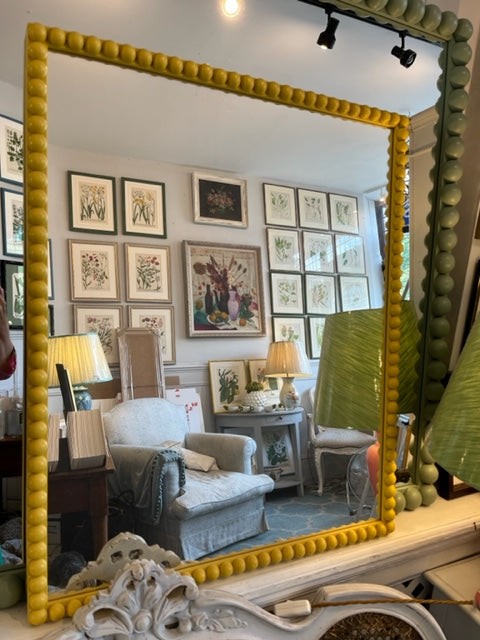 A yellow bobble mirror. The bobbles are 2.5cm wide.
